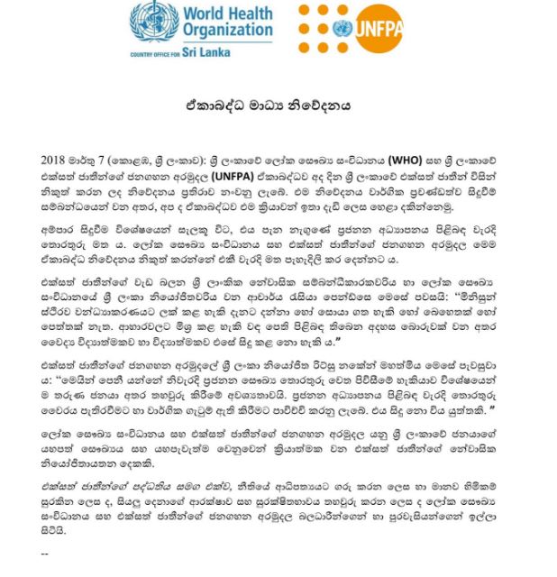 அம்பாறை சம்பவம் குறித்து வன்முறைகள் அதிகரிக்கக் காரணம் பொதுமக்களது சிந்தனைக்கு தவறான தகவலினை வழங்கியமையே என உலக சுகாதார ஸ்தாபனம் (WHO) மற்றும் ஐக்கிய நாடுகளின் மக்கள் தொகை நிதியம் (UNFPA)