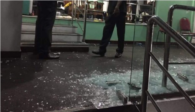 பங்களாதேஷ் வீரர் ஷாகிப் அல் ஹசன் வேகமாக ஓய்வறையின் கதவினைத் திறக்க அது சுவரில் மோதியதிலேயே கண்ணாடி உடைந்ததாக தெரிவிக்கப்படுகின்றது. CCTV காணொளிப் பதிவுகளுக்கு அமைய, நடுவரின் தீர்மானத்திற்கு கவலை தெரிவித்து ஓய்வறைக்கு சென்ற ஷாகிப் அல் ஹசன், துடுப்பெடுத்தாடும் வீரர் விளாசிய 06 ஓட்டங்களுக்கு களிப்பின் ஆவேசத்தில் ஓய்வறையினை விட்டு கதவினை வேகமாகத் திறந்த வண்ணம் மைதானத்தினை நோக்கி சென்றுள்ளார். அச்சந்தர்ப்பத்திலேயே கதவு சுவரில் பலமாக அடிபட கண்ணாடிகள் உடைந்து நொறுங்கியுள்ளதாக அதில் பதிவாகியுள்ளது.