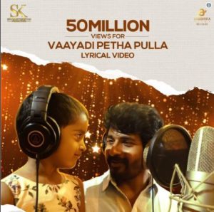 சிவகார்த்திகேயன் தயாரிப்பில் அருண்ராஜா காமராஜ் இயக்கத்தில் உருவாகி இருக்கும் `கனா’ படத்தில் இடம்பெற்றுள்ள வாயாடி பெத்த புள்ள பாடலை 5 கோடிக்கும் அதிகமானோர் கண்டுகளித்தனர்.