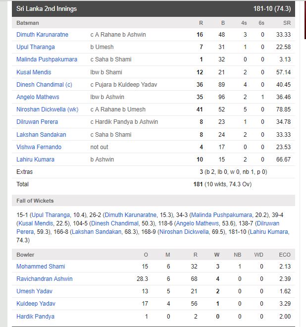 இலங்கையின் இரண்டாம் இன்னிங்ஸ் இற்கான புள்ளி விவரம்.