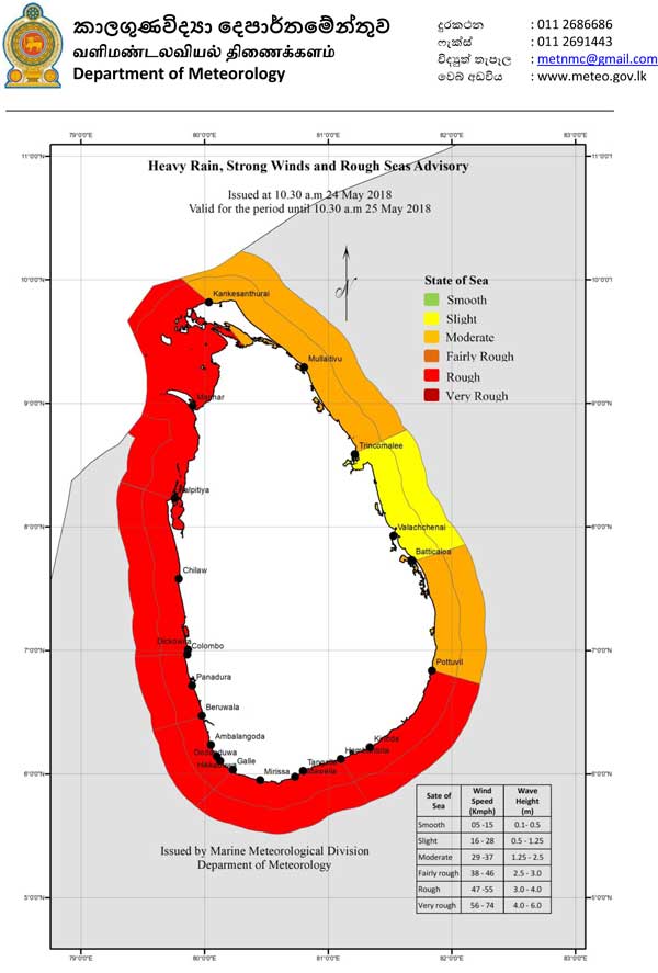 மேலும், காங்கேசன்துறை முதல் புத்தளம், கொழும்பு ஊடாக மாத்தறை வரையான கடற்பரப்பிலும் கடுமையான மழைபெய்வதோடு, பலத்த காற்றும் வீசக்கூடும் என தெரிவிக்கப்படுகின்றது.