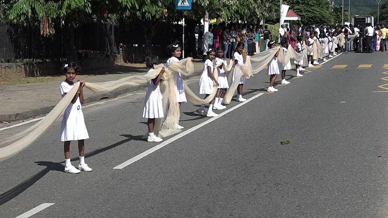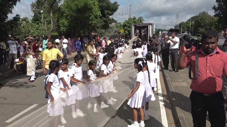 கண்டி – கன்னோருவ பகுதியில் மணமகள் ஒருவருக்கு நீளமான சேலைத் தலைப்பினை உடுத்தி கின்னஸ் சாதனை படைக்க முயற்சிக்கப்பட்டது. இதற்காக 200 மாணவர்களை வரிசையாக நிறுத்தி வைத்து குறித்த சேலைத் தலைப்பை ஏந்த வைத்துள்ளனர்.