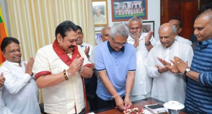 கேக் வெட்டி கொண்டாடிய கோட்டாபய [PHOTO]