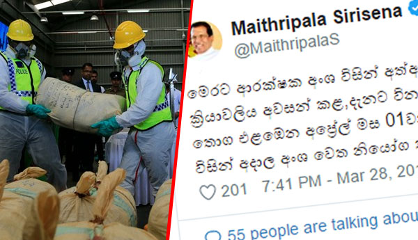(FASTNEWS | COLOMBO) – நீதிமன்ற நடவடிக்கைகள் முடிந்துள்ள, தற்போது அழிக்கக்கூடிய போதைப்பொருட்கள் எதிர்வரும் 01ம் திகதி ஊடக முன்னிலையில் அழிப்பதாக ஜனாதிபதி மைத்திரிபால சிறிசேன தெரிவித்துள்ளார்.