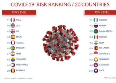 இதன்படி கொரோனா வைரஸ் அதிகமாகப் பரவுகின்ற அபாய வலய நாடுகளின் பட்டியலில் இலங்கை 16ஆவது இடத்தை வகிக்கின்றது.