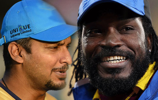 அசாம் 27 ஓட்டங்களில் ஆட்டமிழக்க, அடுத்து வந்த சங்ககாரா 10 ஓட்டங்களில் ஆட்டமிழந்தனர். கெய்ல் தன்னுடைய அதிரடி ஆட்டத்தால் 17 பந்தில் 44 ஓட்டங்கள் எடுத்து ஆட்டமிழந்தார்.