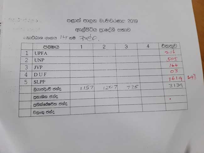 (ஃபாஸ்ட் நியூஸ் | கொழும்பு) – காலி மாவட்டத்தில் எல்பிட்டிய பிரதேச சபைக்கான தேர்தலில் ஸ்ரீலங்கா பொதுஜன முன்னணி அதிக வாக்குகள் வித்தியாசத்தில் வெற்றி பெற்றுள்ளதாக சமூக வலைத்தளங்களில் செய்திகள் வெளியாகியுள்ளன.