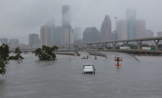 ஹூஸ்டன் பெருநகர் பகுதியில் வெள்ளப்பெருக்கு அவசரகால அறிவிப்பு வெளியிடப்பட்டுள்ளதாகவும் அங்கு பயணம் செய்வது இயலாத ஒன்று என வானிலை அலுவலகம் கூறியுள்ளது.
