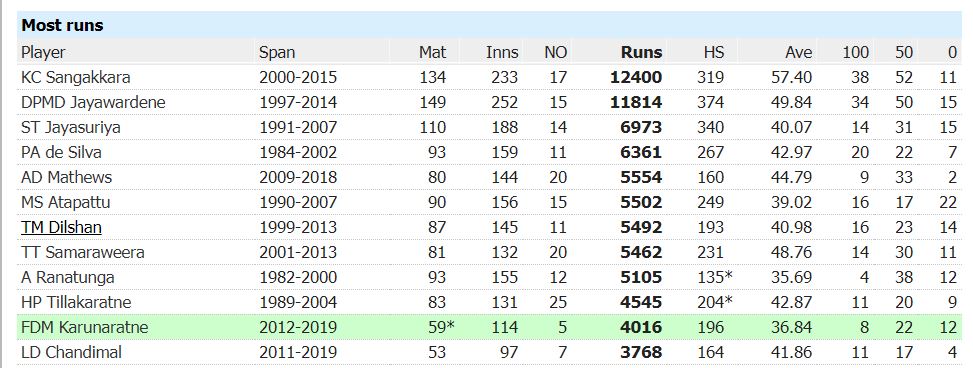 அது இலங்கைக்காக டெஸ்ட் ஓட்டங்கள் 4000 இனை தாண்டிய 11வது இலங்கை துடுப்பாட்ட வீரர் என்ற முறையிலாகும்.
