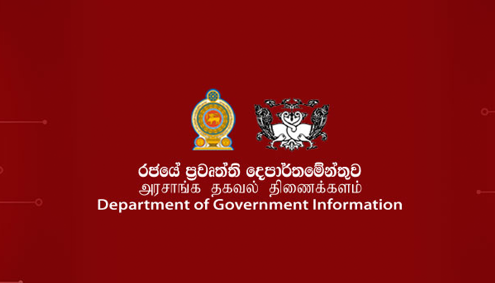 அரசாங்க தகவல் திணைக்களம் வெளியிட்டுள்ள அறிக்கையில் இந்த விடயம் தெரிவிக்கப்பட்டுள்ளது.