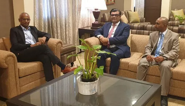 கொழும்பில் உள்ள மாலைத்தீவு தூதுரகத்திற்கு விஜயம் மேற்கொண்ட அவரை இலங்கைக்கான மாலைத்தீவின் தூதுவர் ஒமர் அப்துல் ரஸாக் வரவேற்றார்.