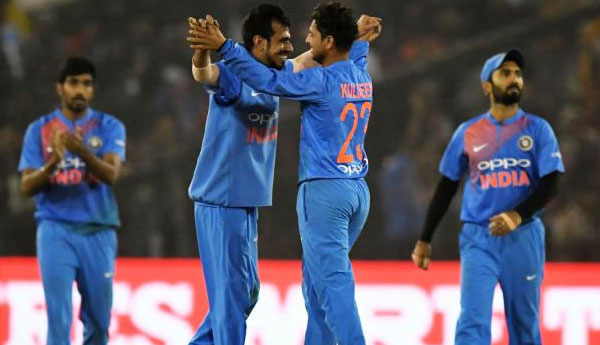 பந்து வீச்சில் இந்திய அணியின் சுழற்பந்து வீச்சாளர் யுஸ்வேந்திர சஹால் 4 விக்கட்டுக்களையும் , ஹர்திக் பாண்டியா 3 விக்கட்டுக்களையும் வீழ்த்தினர்.