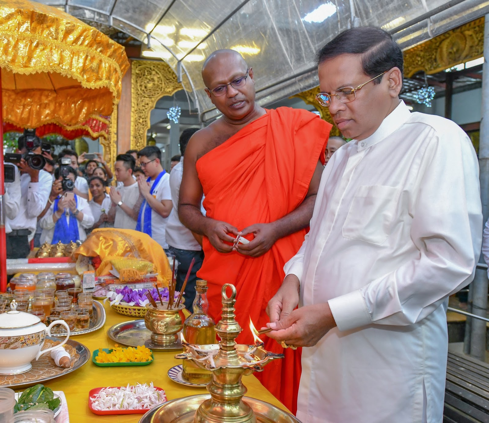 கொழும்பு – கங்காராம விகாரையில் இடம்பெற்ற மத நிகழ்வுகளில் நேற்று(01) ஜனாதிபதி மைத்திரிபால சிறிசேன, எதிர்கட்சித் தலைவர் மஹிந்த ராஜபக்ஷ மற்றும் அமைச்சர் சஜித் பிரேமதாச உள்ளிட்ட அமைச்சர்கள் பாராளுமன்ற உறுப்பினர்கள் கலந்து கொண்டிருந்தனர்.