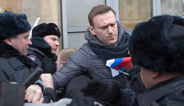 இந்த கருத்தை முன்வைத்து நாடு முழுவதும் ஆர்ப்பாட்டங்களிலும், போராட்டங்களிலும் ஈடுபடுமாறு தனது கட்சியினரை அவர் கேட்டு கொண்டுள்ளார். மாஸ்கோ நகரில் கிரெம்ளின் மாளிகை அருகே நடைபெறும் போராட்டத்தில் கலந்து கொள்வதற்காக வந்த அலெக்சி நவல்னி-யை புஷ்கின்ஸ்கயா சதுக்கம் அருகே பொலிசார் தடுத்து நிறுத்தி, கைது செய்துள்ளதாக சர்வதேச ஊடகங்கள் செய்தி வெளியிட்டுள்ளன.