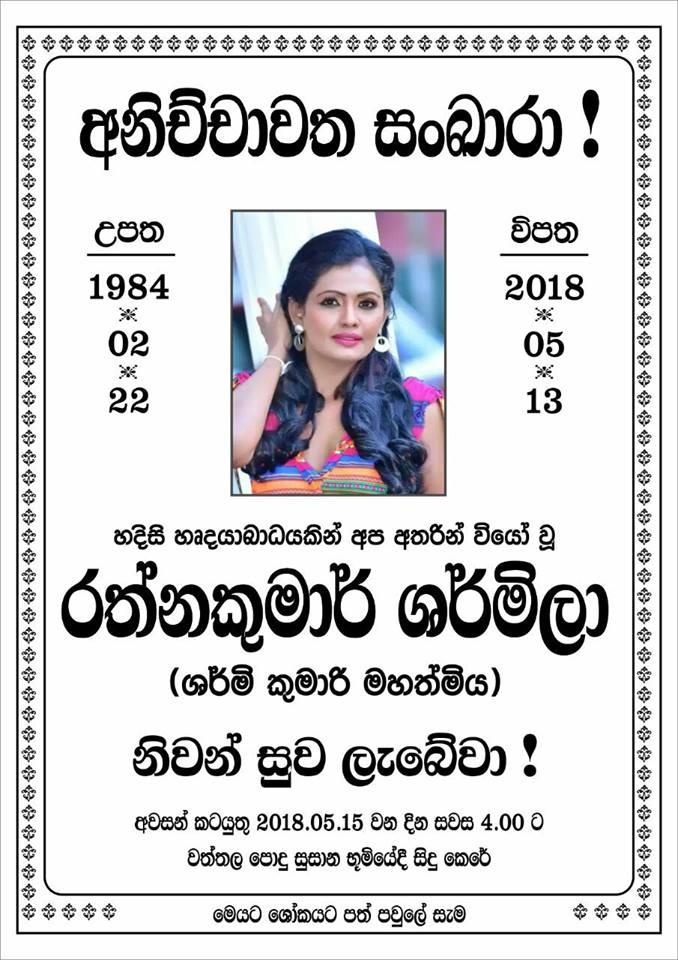இலங்கையின் சுப்பர் விபச்சாரி என கூறப்படும் ஷர்மி குமார் இறந்து விட்டாரா..? fb பதிவுகளை சூடாக்கிய ஷர்மி….