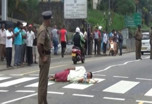 கண்டி மாவட்ட ஐக்கிய தேசிய கட்சியின் பாராளுமன்ற உறுப்பினர் ஆனந்த அளுத்கமகே, நாவலப்பிட்டிய பொலிஸ் நிலைய பொறுப்பதிகாரி ஆனந்த ராஜபைக்ஷவை இடமாற்றம் செய்யக் கோரி பாதசாரிகள் கடவையில் படுத்து ஆர்ப்பாட்டமொன்றில் ஈடுபட்டுள்ளார்.