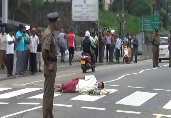 கண்டி அட்டன் பிரதான வீதியின் நாவலப்பிட்டி பொலிஸ் நிலையத்தின் முன்னாள் உள்ள பாதசாரிகள் கடவையில் படுத்தவண்ணமே மேற்படி ஆர்ப்பாட்டம் இடம்பெற்றுவருவதால் குறித்த பகுதிக்கான போக்குவரத்து மாற்று பாதையினூடாக இடம்பெற்று வருவதாக நாவலப்பிட்டி பொலிஸார் தெரிவித்தனர்.