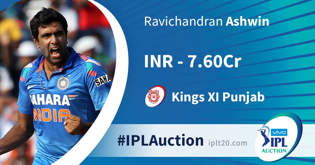 02. இந்திய வீரர் அஸ்வினை பஞ்சாப் அணிக்கு இந்திய ரூபாவில் 7.60 கோடிக்கு ஏலம்